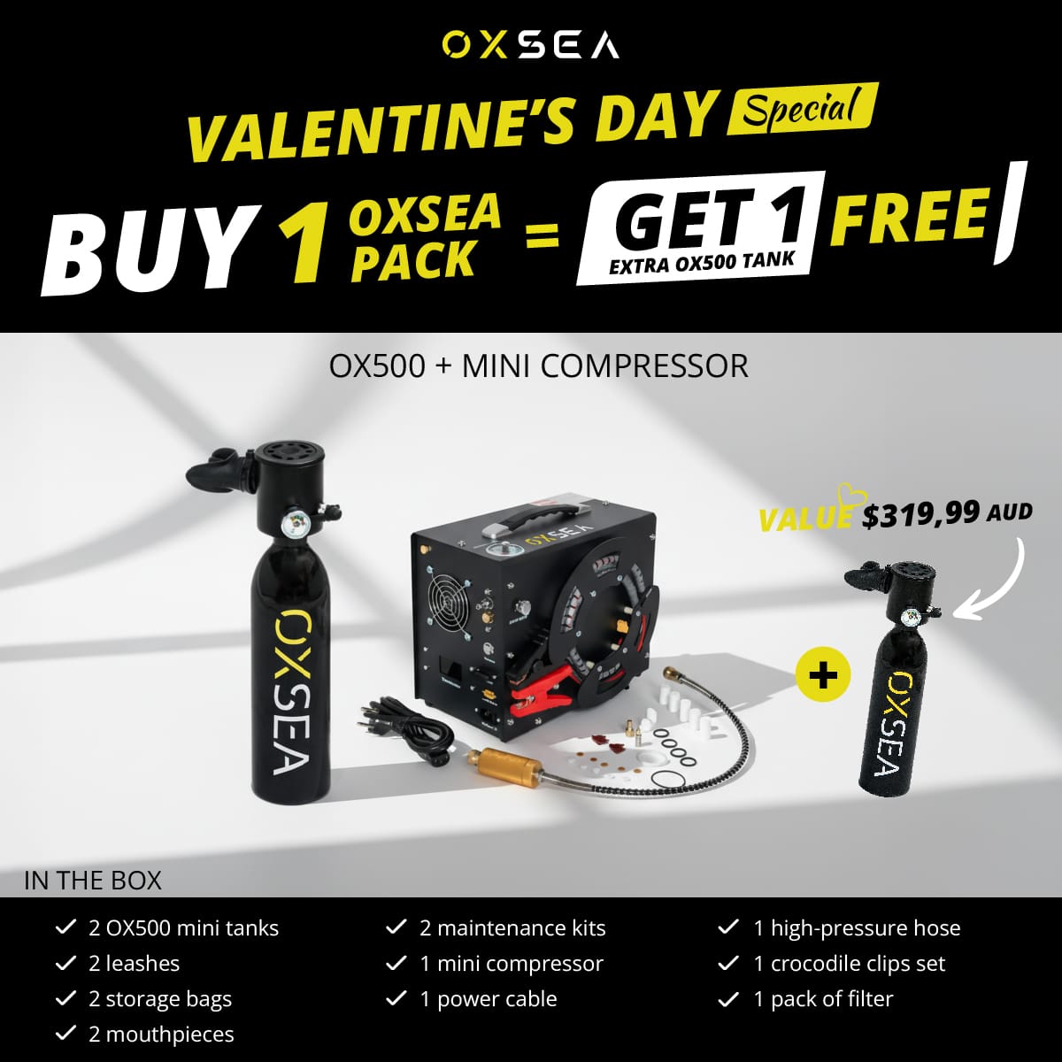 designed for explorers who value simplicity, safety, and freedom. This pack includes the OXSEA Mini Compressor for quick refills.