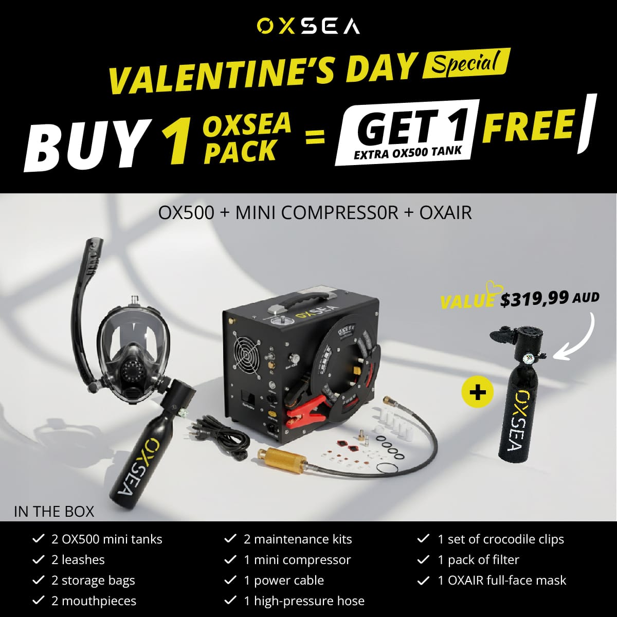 Discover the OX500 Pack: Mini Tank + Mini Compressor + OXAIR Mask.