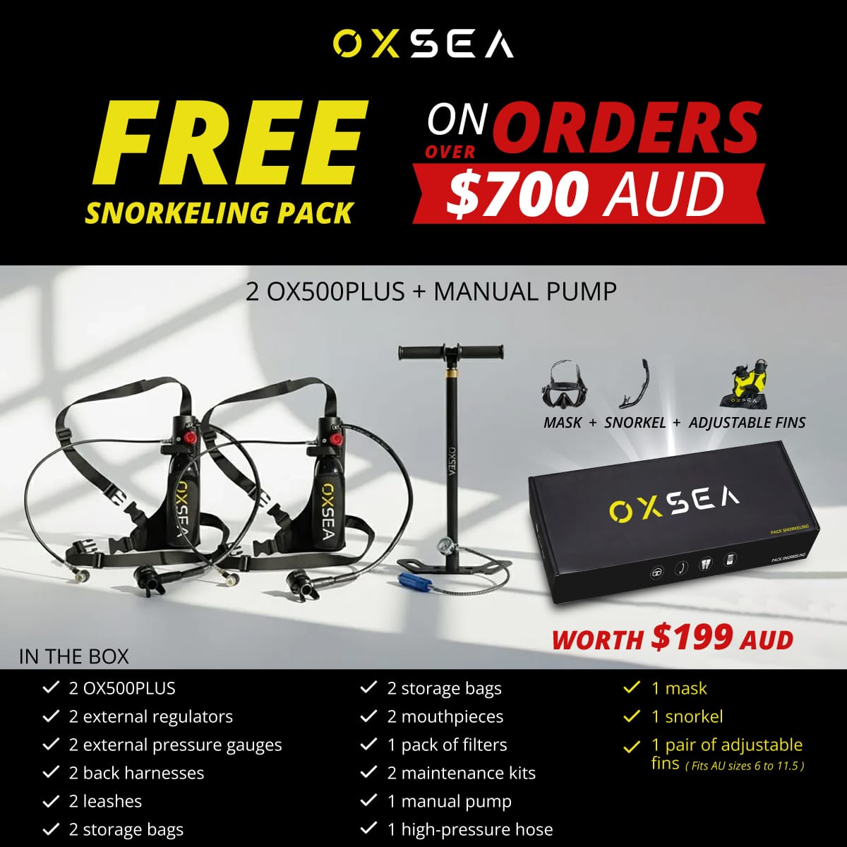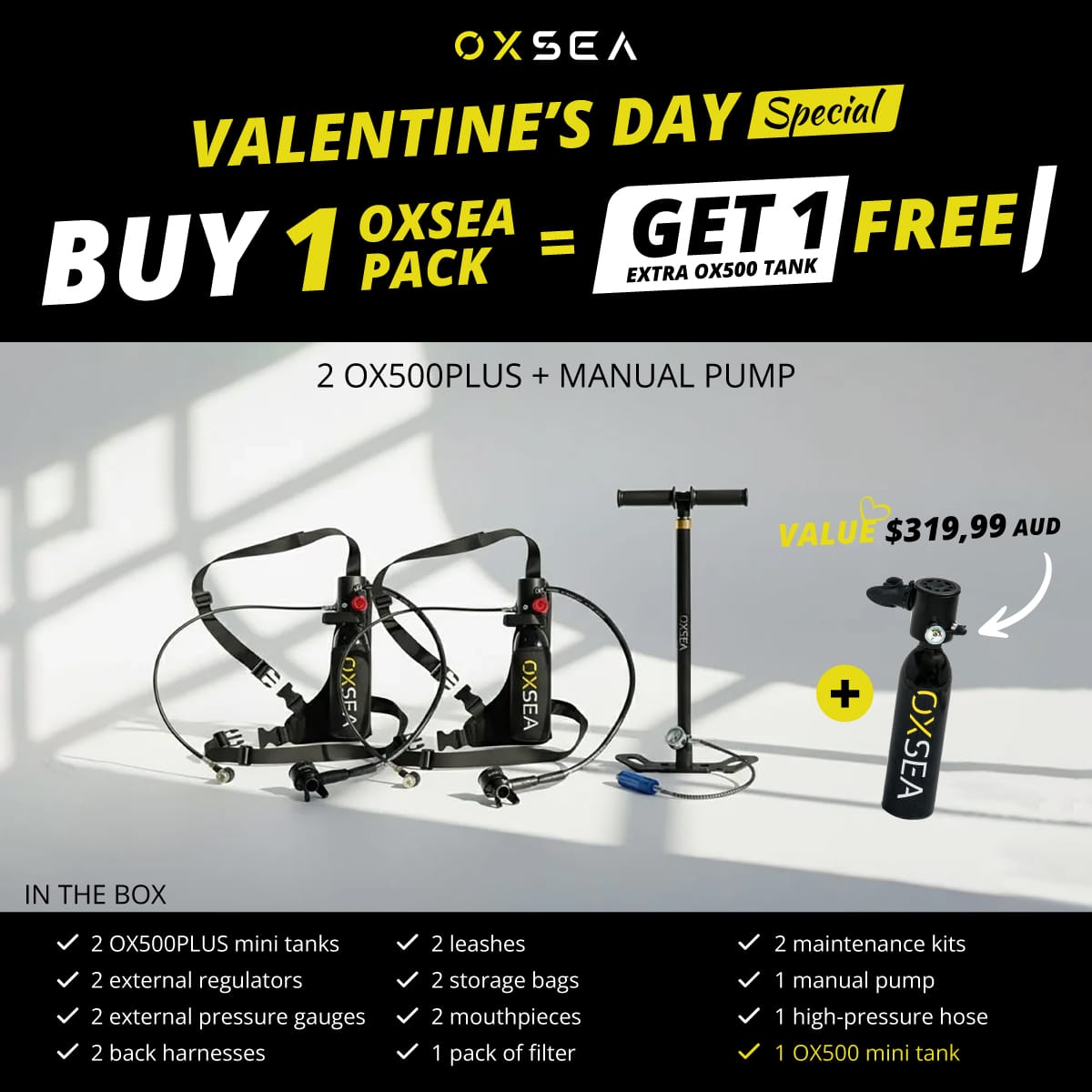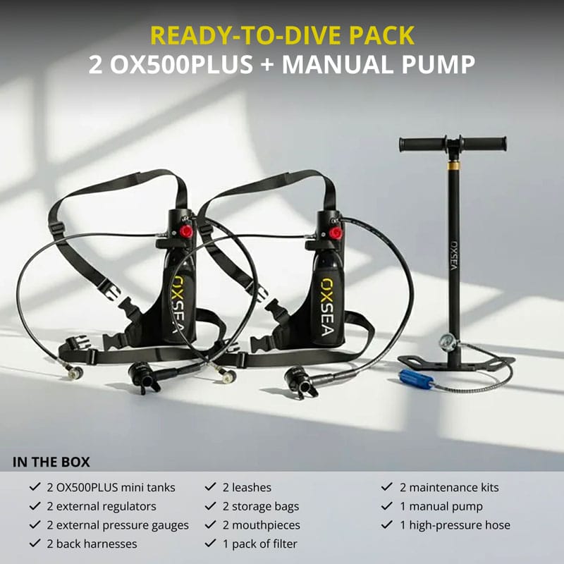 designed for explorers who value simplicity, safety, and control. This DUO pack includes two tanks and the OXSEA Hand Pump for easy refills.