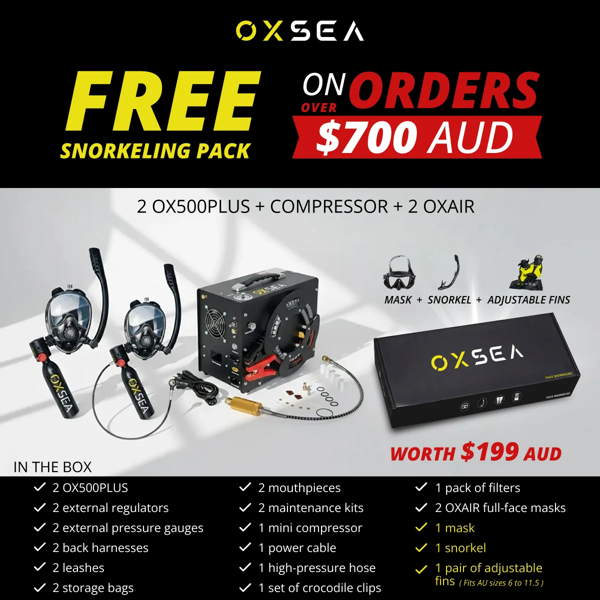 January Bonus: Free snorkelling pack (A$199 value) on orders over A$700 January Bonus: Free snorkelling pack (A$199 value) on orders over A$700