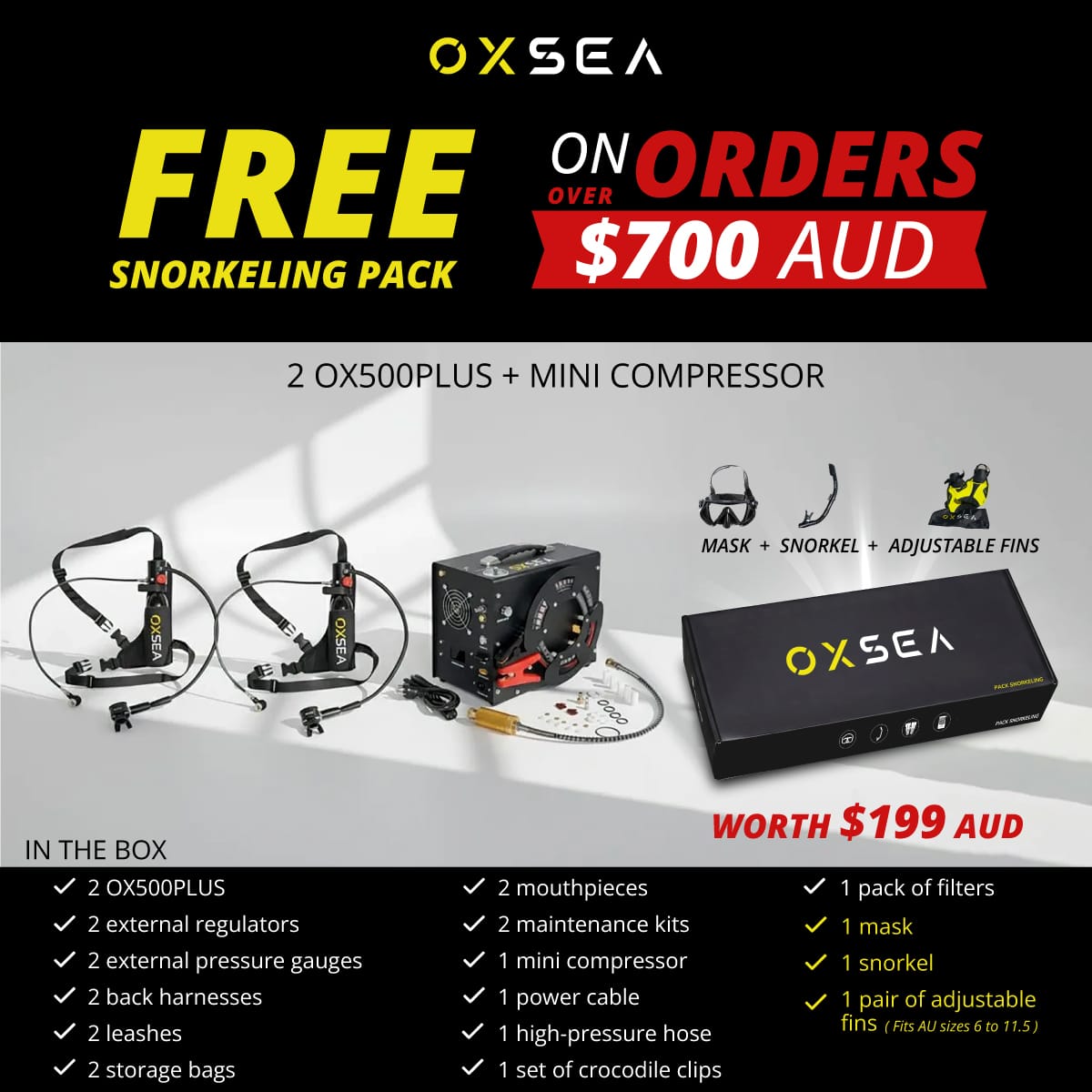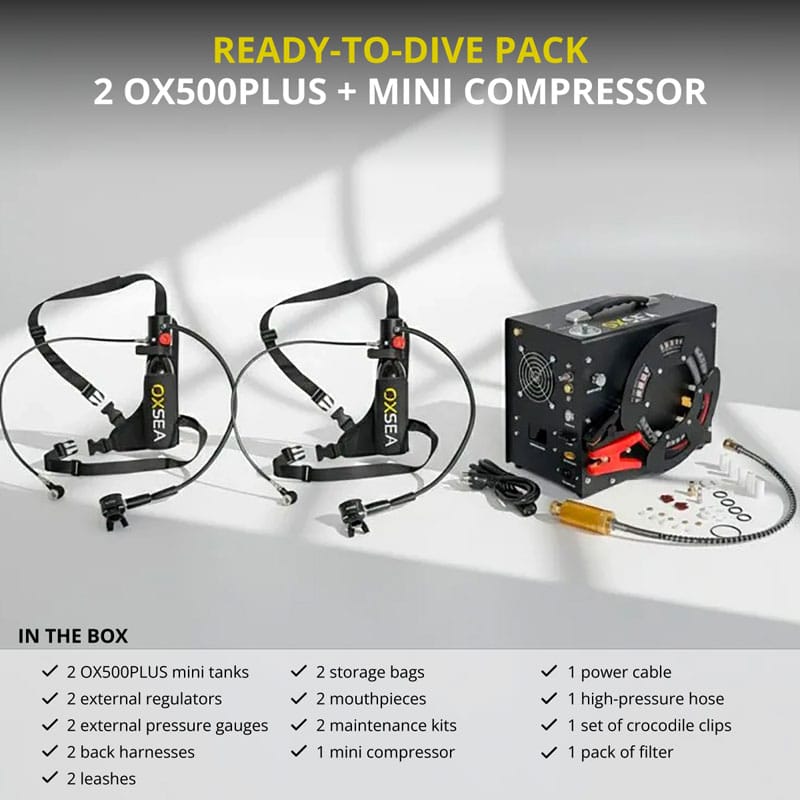 designed for explorers who value simplicity, safety, and control. This DUO pack includes two tanks and the OXSEA Mini Compressor.