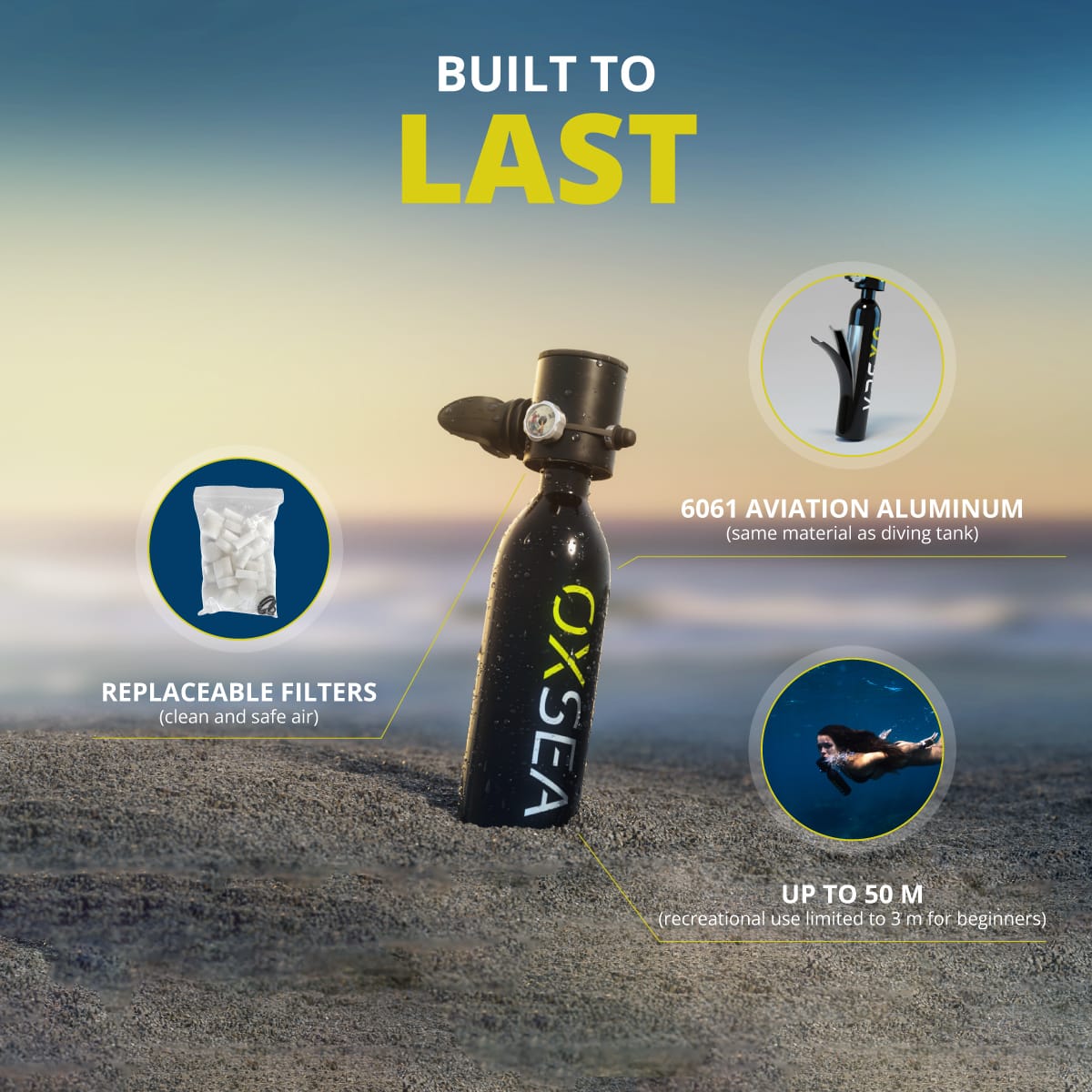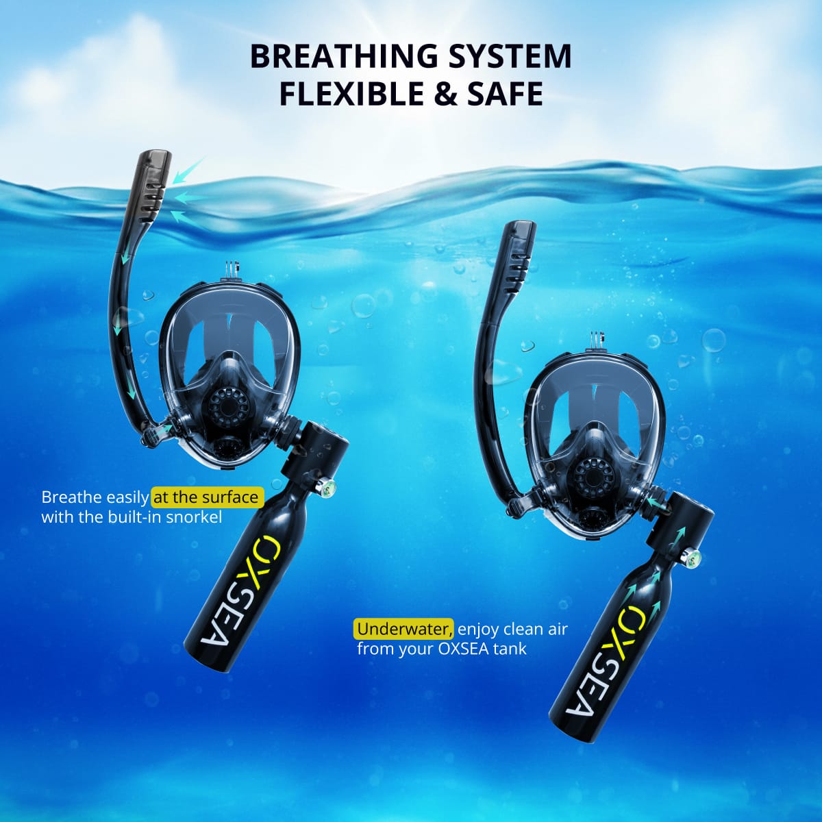 designed for explorers who value simplicity, safety, and control. This pack includes the OXSEA Mini Compressor and the OXAIR mask.